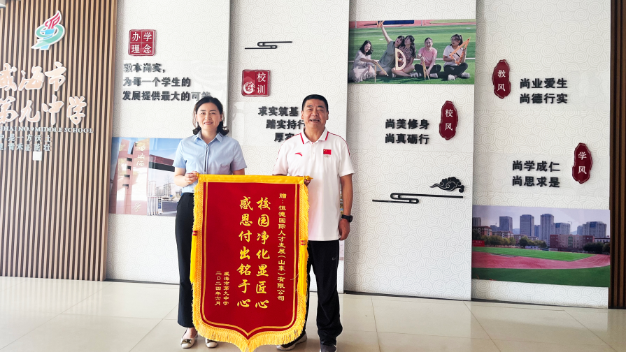 暑假已至,迎來(lái)喜報(bào)!我們榮幸地收到了來(lái)自威海市第九中學(xué)的校領(lǐng)導(dǎo)贈(zèng)送的錦旗,這份榮譽(yù)是信任更是責(zé)任。在此,我們謹(jǐn)代表公司全體員工,向?qū)W校領(lǐng)導(dǎo)表示衷心的感謝,感謝您對(duì)我們保潔工作的贊美,更是對(duì)公司服務(wù)的認(rèn)可。