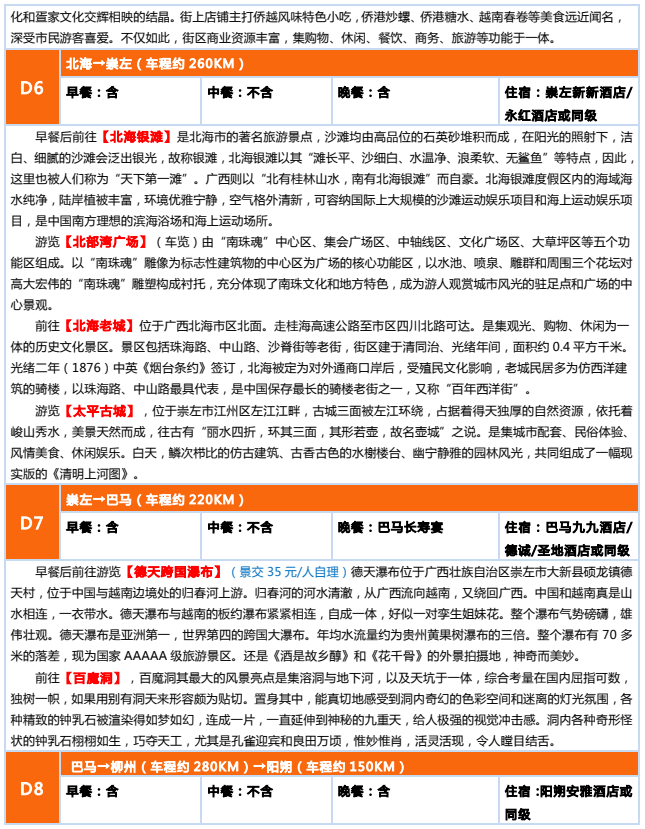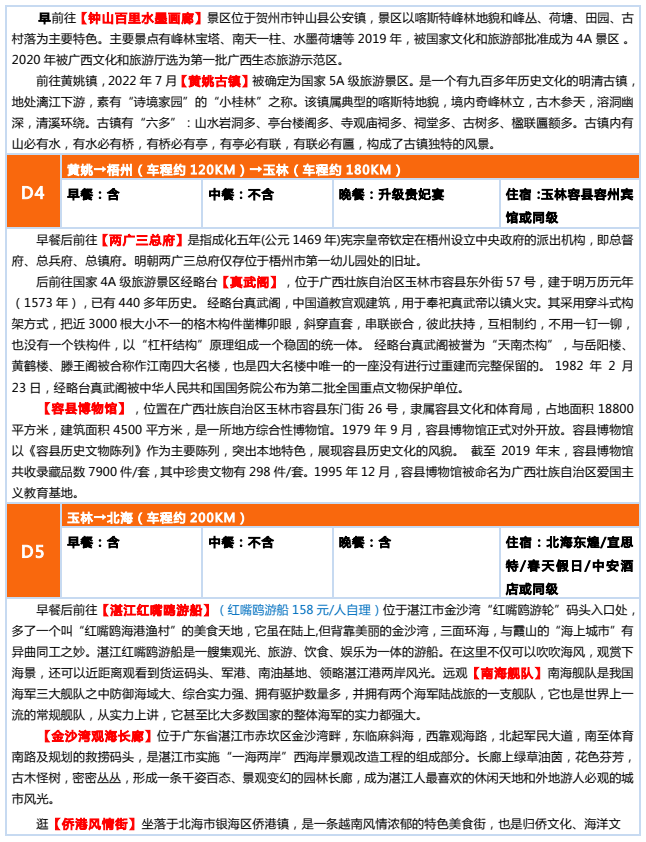 ??精華景點:鐘山百里水墨畫廊/黃桃古鎮/兩廣三總府/真武閣/容縣博物館/湛江紅嘴鷗游船/南海艦隊/北海銀灘/德天大瀑布/白魔洞/巴馬長壽村/興平古鎮/冠巖風景區/象鼻山/日月雙塔等等...