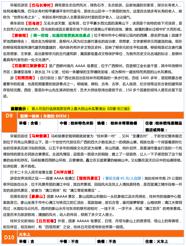 廣西大全景雙臥12日游